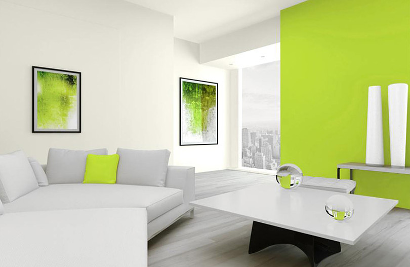 Atmosferę wnętrza, jego wyjątkowy charakter budują pojawiające się w nim barwy. Mocne, nasycone kolory lepiej wyglądają we wnętrzu w postaci pojedynczych plam. Całe pomieszczenie pomalowane w tak mocnym, zielono-żółtym kolorze byłoby przytłaczające i zbyt agresywne. Zapewnienie białego tła wyciszyło działanie soczystej, wiosennej zieleni, nie zabierając jej pierwszoplanowej roli. Pozostała ona dominująca i stała się jednocześnie pomysłem na to wnętrze, podkreślonym odpowiednio wybarwionymi dodatkami.