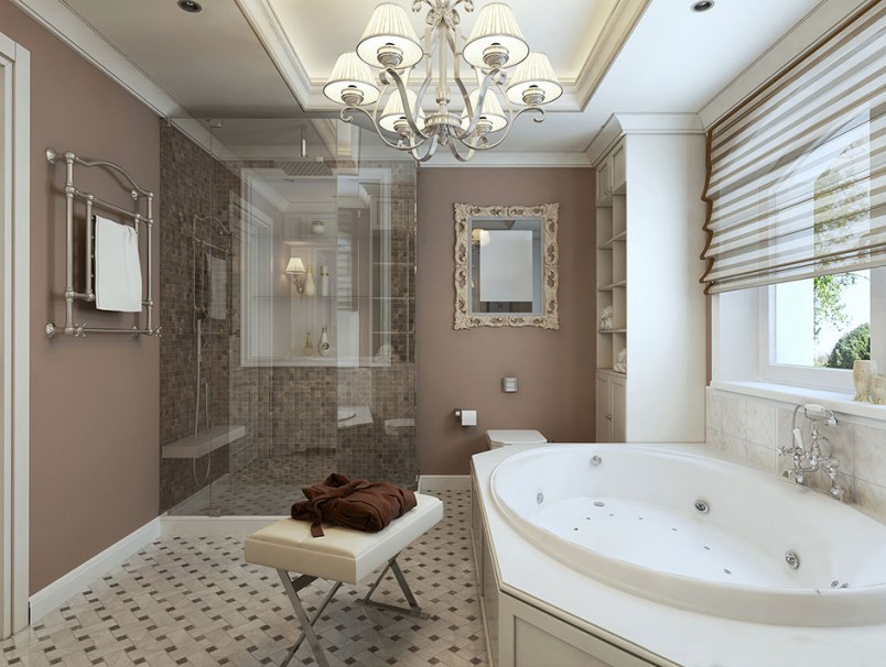 Łazienka też może być stylowa, jeśli pomalujesz ściany hydrofobową i oleofobową farbą MAGNAT Creative Kitchen&Bathroom w odcieniu KB9 Mglisty Bronzyt i użyjesz klasycznych dodatków. Jeśli nie boisz się barokowego szaleństwa, wybierz lustro w bogato zdobionej ramie, żyrandol z kryształowymi elementami, a nawet sztukaterię. Dla tych, którzy nie lubią przepychu, przypadnie do gustu aranżacja kremowej łazienki w konwencjonalnym stylu przy użyciu tej zachowawczej gamy barw. Gustowna, ale stonowana posadzka na podłodze, połyskująca mozaika w kabinie prysznicowej i ciepłe światło otulą cię intymną atmosferą i satysfakcjonującym dyskretnym luksusem.