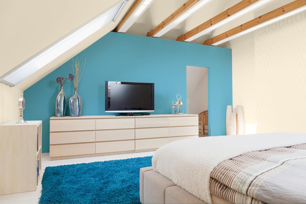 Jeśli masz sypialnię na poddaszu – jesteś szczęściarzem. Wykorzystaj możliwości, jakie dają skośne płaszczyzny na łóżkiem i namaluj sobie nieboskłon w ulubionym wydaniu. Wtedy już zawsze na pytanie: „jak się spało?” będziesz odpowiadać: „jak w niebie”.