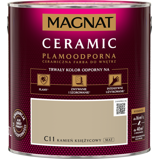 MAGNAT Ceramic to ceramiczna farba do wnętrz bazująca na ceramicznych komponentach oraz najwyższej jakości żywicach i pigmentach. Ta unikalna formuła zapewnia farbie MAGNAT trwały kolor odporny na: plamy, zmywanie i szorowanie oraz intensywne użytkowanie .