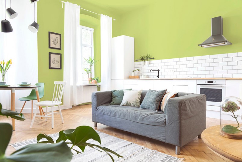 Małe wnętrza wymagają optycznego powiększenia. Jednym ze sposobów na uzyskanie wrażenia większej przestronności jest odpowiednie operowanie kolorem. W małych wnętrzach najlepiej sprawdzają się jasne barwy i wszelkie miękkie pastelowe odcienie, ponieważ pomieszczenia ubrane w ciemne kolory mogą się "skurczyć" w oczach. Świetnym kolorem do małych salonów jest uniwersalny kolor biały. Pomaluj ściany farbą MAGNAT Ceramic w odcieniu C1 Biały Diament. Na takim białym tle idealne sprawdzą się jasne szarości oraz jasne, naturalne drewno. W pełni wykorzystaj naturalne światło nie chowając okna za ciemnymi kotarami. Długie jasne zasłony dodatkowo podwyższą pomieszczenie, dodając mu przestronności.