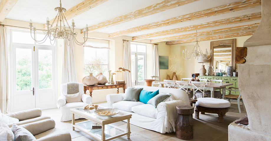 Rustykalne domy są rodzinne, ciepłe i gościnne. Urządza się je w tradycyjnym stylu, raczej tak, by były funkcjonalne niż eleganckie. Nie brakuje tu starych mebli odziedziczonych po poprzednich pokoleniach – stół po babci, kredens po rodzicach, bujany fotel wujka odnajdą się tu idealnie! Królują w nich ciepłe kolory (kremy, beże), ludowe czy wiejskie wzory, dużo naturalnych tkanin jak len czy bawełna. Meble mogą być wykonane ręcznie i w wiejskim, swobodnym stylu – z pęknięciami, rysami, nieregularną strukturą blatu, z wieloma niedoskonałościami.