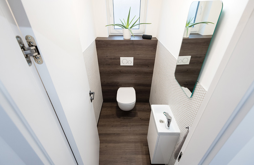 Oddzielna toaleta była bardzo popularnym rozwiązaniem w blokach w czasach PRL. Teraz wraca się do tego pomysłu najczęściej w mieszkaniach o większym metrażu lub piętrowych apartamentach z łazienką master na górnym piętrze i toaletą dla gości piętro niżej.