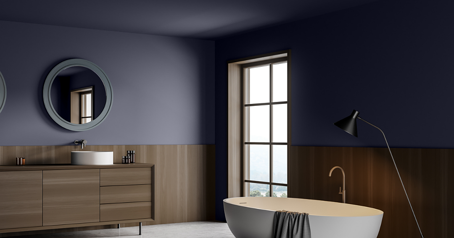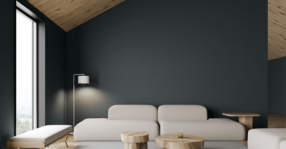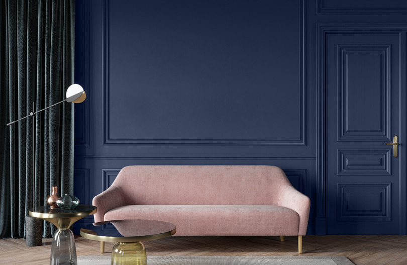 Wbrew pozorom ciemne barwy ścian dobrze odnajdują się również w małych pomieszczeniach. Powszechnie uważa się, że małe pokoje należy malować na jasne barwy, które optycznie powiększają i rozjaśniają przestrzeń. Jeśli jednak kochasz ciemne odcienie, nie wykluczaj ich na niewielkim metrażu. Wystarczy, że wprowadzisz do aranżacji jasne barwy kontrastujące, którymi zrównoważysz paletę kolorystyczną, a unikniesz poczucia ciężkości. Możesz to zrobić malując ścianę na przykład farbą MAGNAT Ceramic C67 Bezkresny Tanzanit i na jej tle stawiając sofę w kolorze pudrowego różu. Jasne drewno podłogi, jasnoszary dywan oraz połyskujące elementy wyposażenia dodatkowo rozświetlą aranżację.