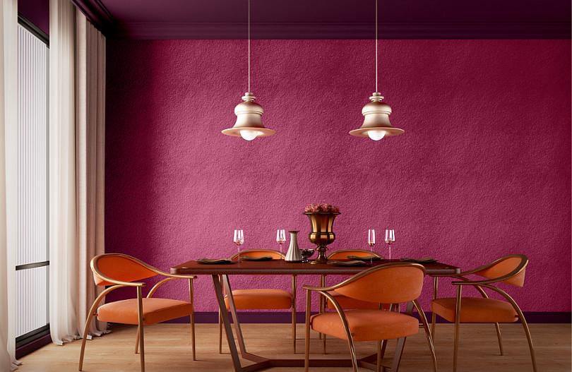 Amarantowy kolor ścian - sposób na przełamanie koloru we wnętrzach