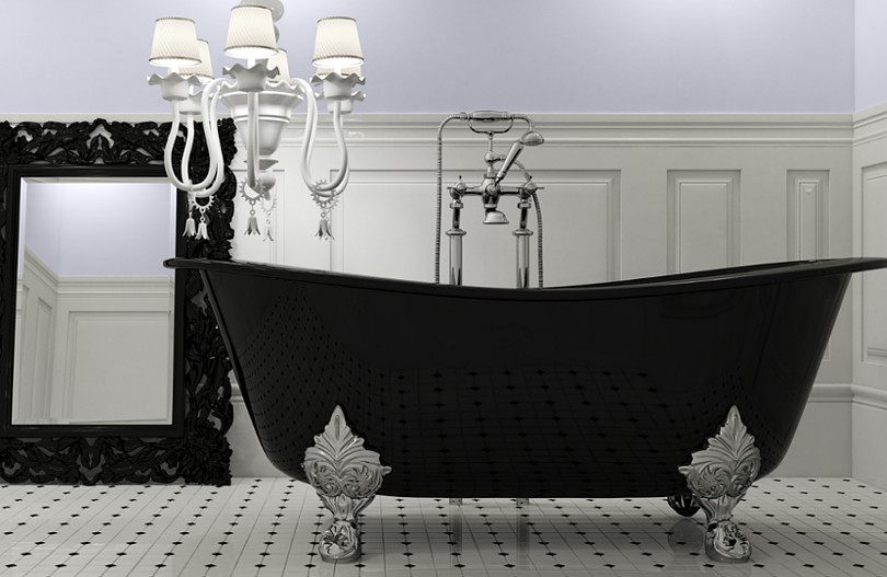 Czarne dodatki w klasycznej łazience