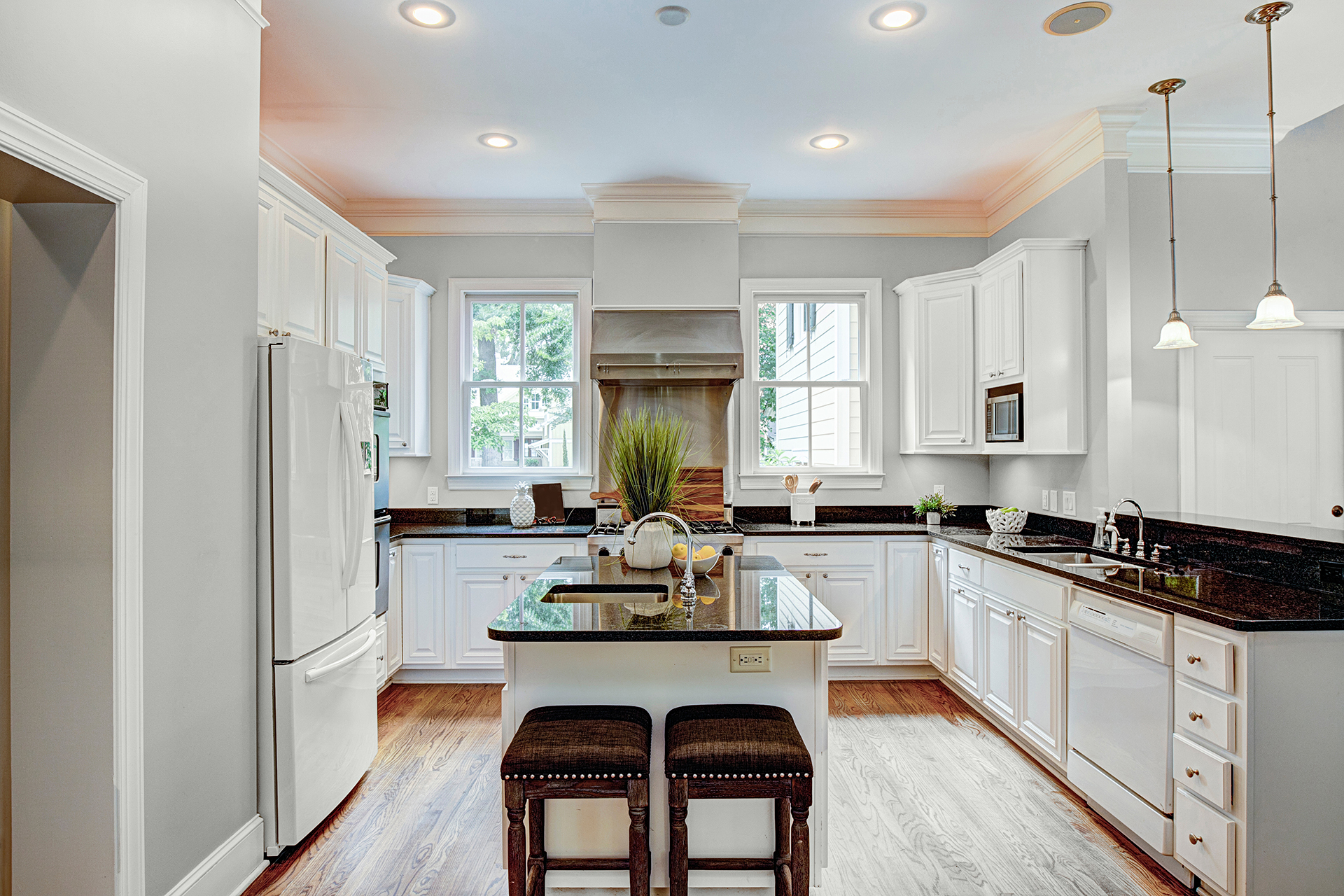 W kuchni postaw na klasyczną zabudowę oraz obowiązkową wyspę kuchenną, która pełni też funkcję dodatkowego stołu śniadaniowego.