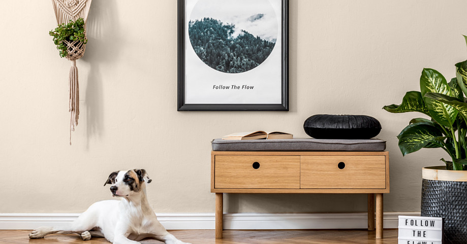 Szary jako kolor neutralny (czyli spoza koła barw) ma tę zaletę, że pasuje do każdej innej barwy (podobnie jak biel i czerń). W aranżacji z jasnobrązowymi meblami stworzy modne, ale naturalne i spokojne zestawienie. Jasne meble dobrze pasują zwłaszcza do ściany w nieco ciemniejszym odcieniu – np. A17 Nietuzinkowy Kwarc z palety Magnat Ceramic Care. Jeśli dodasz do tego stylowe dodatki i drewnianą podłogę, otrzymasz przepis na idealne wnętrze w stylu loft czy boho.