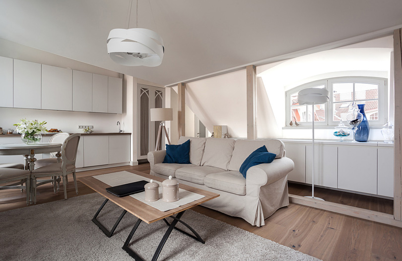 Ciekawym rozwiązaniem, które zdobywa coraz większą liczbę fanów, jest kuchnia ukryta w zabudowie. Pomysł ten świetnie sprawdza się w małych przestrzeniach, oszczędzając powierzchnię, ale może być również atrakcyjnym punktem dużego domu. Wygląd i funkcjonalność takiej schowanej kuchni zależy od twojej fantazji. Zauważ, że odpowiedni projekt może nawet uwzględnić stół i stołki chowane pod blatem po skończonym posiłku. Możesz pójść krok dalej w ukrywaniu swojej nowoczesnej kuchni i pomalować zarówno zabudowę jak i ściany na biało, dzięki czemu wnętrze będzie wyjątkowo jasne.