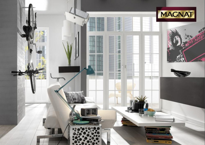 Styl rustykalny wykorzystuje też bardzo konkretne dodatki. W takich wnętrzach bardzo często pojawia się naturalne drewno. Charakterystyczne są podłogi z bielonych desek z uwydatnionym usłojeniem. Proste meble z mocnymi przetarciami i postarzonymi kolorami. Ważną rolę odgrywa również naturalna cegła, w której wykonuje się całe ściany. Te najczęściej są jedynie malowane na biało. Doskonałym wyborem do realizacji takiej ściany będzie farba z kolekcji MAGNAT Creative w kolorze CR8 Niewinna Biel. Poza drewnem i kamieniem często pojawiają się też miedziane dodatki czy typowe dla wiejskiej chaty pasiaste chodniki i ozdobne makatki.