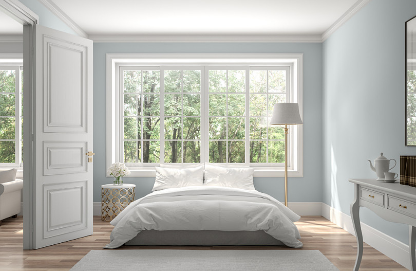 Warto zainwestować w dekorację w postaci białych listew podłogowych i sufitowych, które dodadzą wnętrzu klasy. Jeśli zdecydujesz się na klasyczne wyposażenie, eleganckie rzeźbione drzwi i okna ze stylową stolarka okienną i szprosami, listwy takie wydają się być kropką nad „i” dekoracyjnego aspekty aranżacji. Taka sypialnia z pewnością ukoi Twoje zmysły i zapewni upragniony relaks po ciężkim dniu.