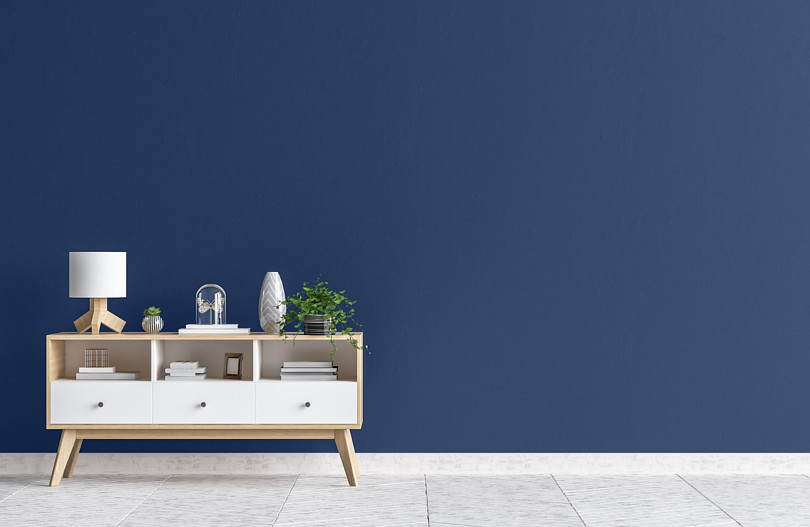 Barwę, która pomalujesz ściany możesz wprowadzić do wnętrza również w postaci dodatków, by zachować spójność aranżacji. Pomysł na idealny ciemny, niebieski kolor ścian do jasnej podłogi i jasnych mebli? Na przykład MAGNAT Ceramic Care A8 Śmiały Tanzanit.