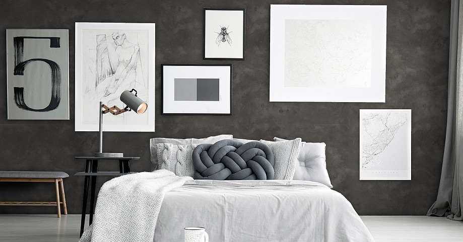 Jeśli jednak preferujesz monochromatyczne aranżacje, możesz pokryć wszystkie ściany produktem MAGNAT Style Beton w kolorze Beton Hematyt efekt gładki BT 10 kg + PB P16 100 ml, a całe wnętrze wyposażyć w meble i dodatki w kolorze białym i szarym, delikatnie przełamując je obecnością jasnego drewna. W takiej aranżacji Twoja szara ściana może stać się piękną galerią biało-czarnych grafik o różnych rozmiarach. Niektóre opraw w czarne ramy, a niektóre zawieś w przezroczystych antyramach.