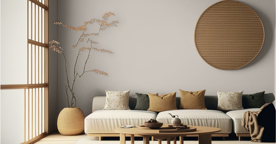 Japońskie domy są urządzone z prostotą i harmonią. Bardzo podobnie do nich wyglądają wnętrza domów w Danii czy Szwecji. Jeden i drugi styl kocha naturalne materiały, w tym przede wszystkim drewno i kamień, len, bawełnę. Kolorystyka w przypadku obu stylów aranżacji jest zbliżona – to biel i jej odcienie oraz kolory drewna i ziemi – piaskowy, beżowy, brązowy. Meble są minimalistyczne, funkcjonalne, pozbawione wielu ozdób. W aranżacji użyto farby MAGNAT Ceramic w kolorze C11 Kamień Księżycowy oraz C46 Powabny Diament