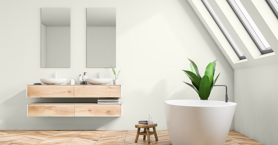 Pozwól, by styl skandynawski rozgościł się w Twojej łazience na poddaszu. Zacznij od odpowiedniego odcienia farby MAGNAT Ceramic Kitchen&Bathroom lub Magnat Creative Kitchen&Bathroom. Następnie sięgnij po drewno, metal i minimalistyczne wyposażenie, a już wkrótce przeniesiesz swoje wnętrze na daleką Północ.