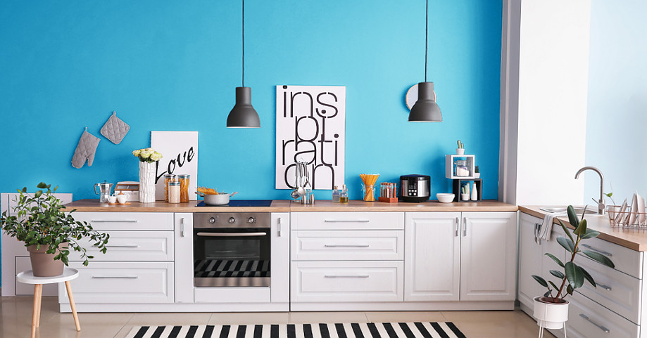 Niebieski kolor to znakomita propozycja do kuchni. Sprawdzi się nie tylko jako kolor frontów kuchennych, płytek nad blatem czy dodatków, ale także jako odcień ściany. Wybierz farbę odpowiednią do malowania ścian w kuchni (taką jak Magnat Ceramic Kitchen&Bathroom lub Magnat Creative Kitchen&Bathroom), dobierz właściwy odcień i już dziś ciesz się modnym niebieskim kolorem we własnej kuchni!