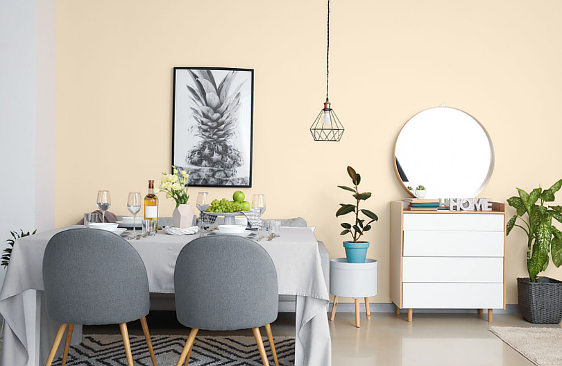 Inna dobra propozycja na ściany w małej jadalni to paleta beży – KL19 beżowy czy KL39 chłodny beż dodadzą naturalnego charakteru każdemu wnętrzu.
