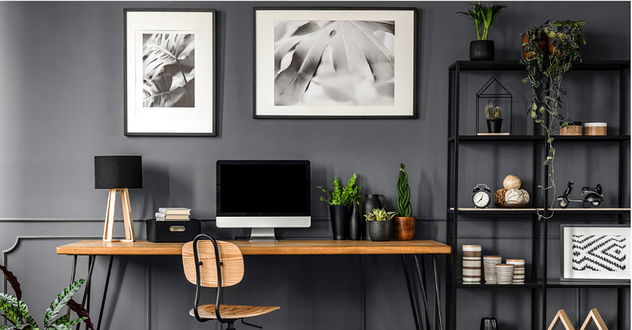 W miejscu pracy ważny jest porządek, ponieważ chaos może rozpraszać Twoją uwagę, dlatego wstaw regały do przechowywania potrzebnych dokumentów. Nie zapominajmy o dekoracji. Idealnym sposobem na ożywienie wnętrza są żywe rośliny doniczkowe, które dodatkowo poprawią jakość powietrza.