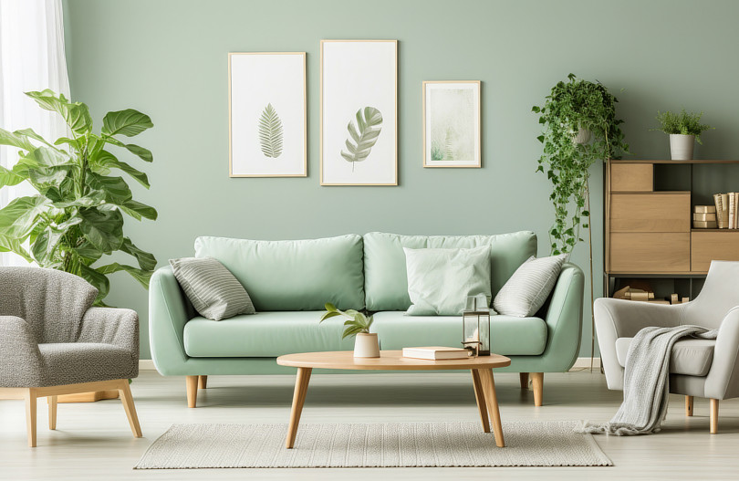 Kolor pistacjowy w salonie