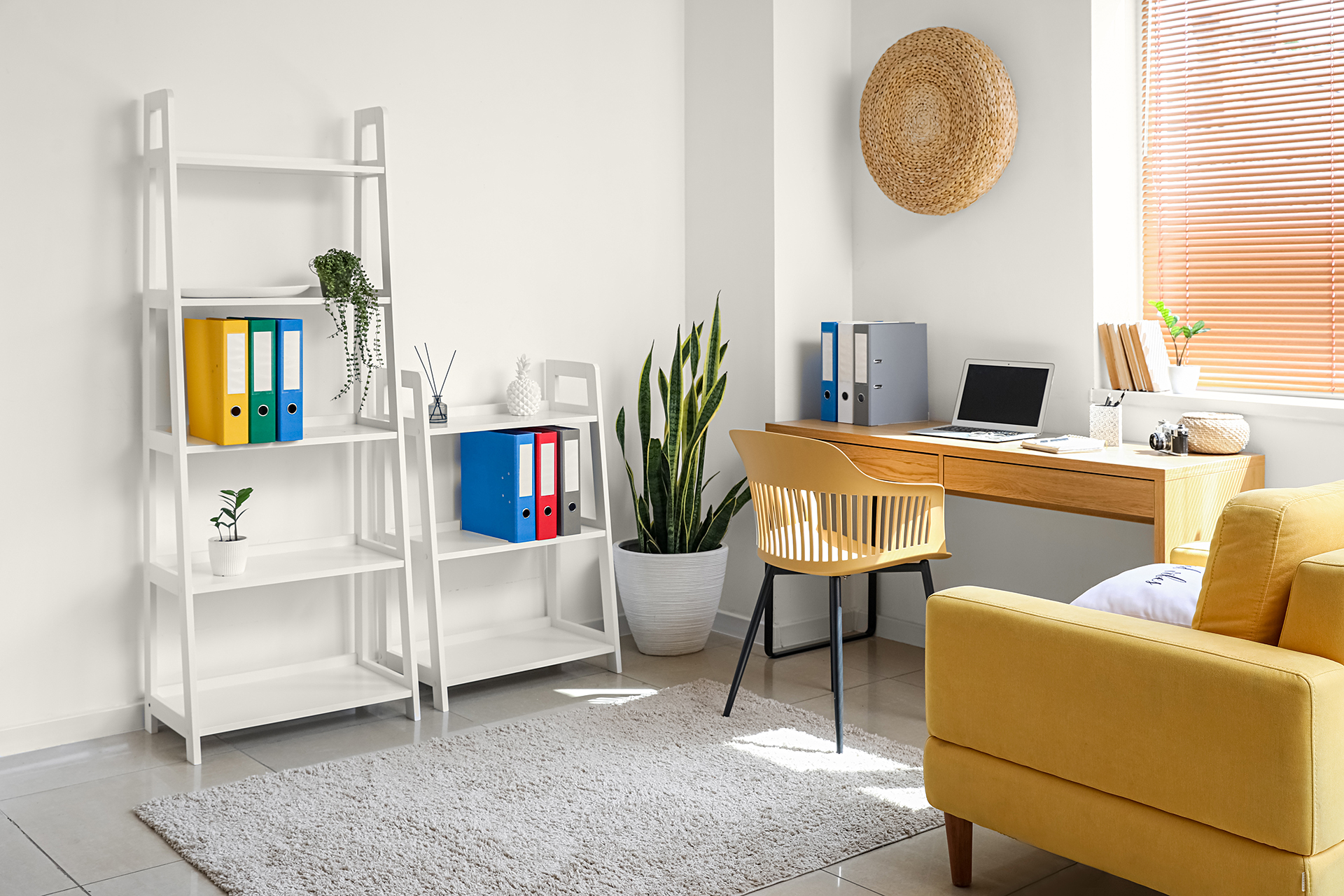 Do domowego biura wybierz jasne i neutralne kolory na ściany. Pomogą Ci się skoncentrować, a także rozświetlą pomieszczenie, co poprawi nastrój na co dzień. W roli dodatków może pojawić się energetyczny żółty.