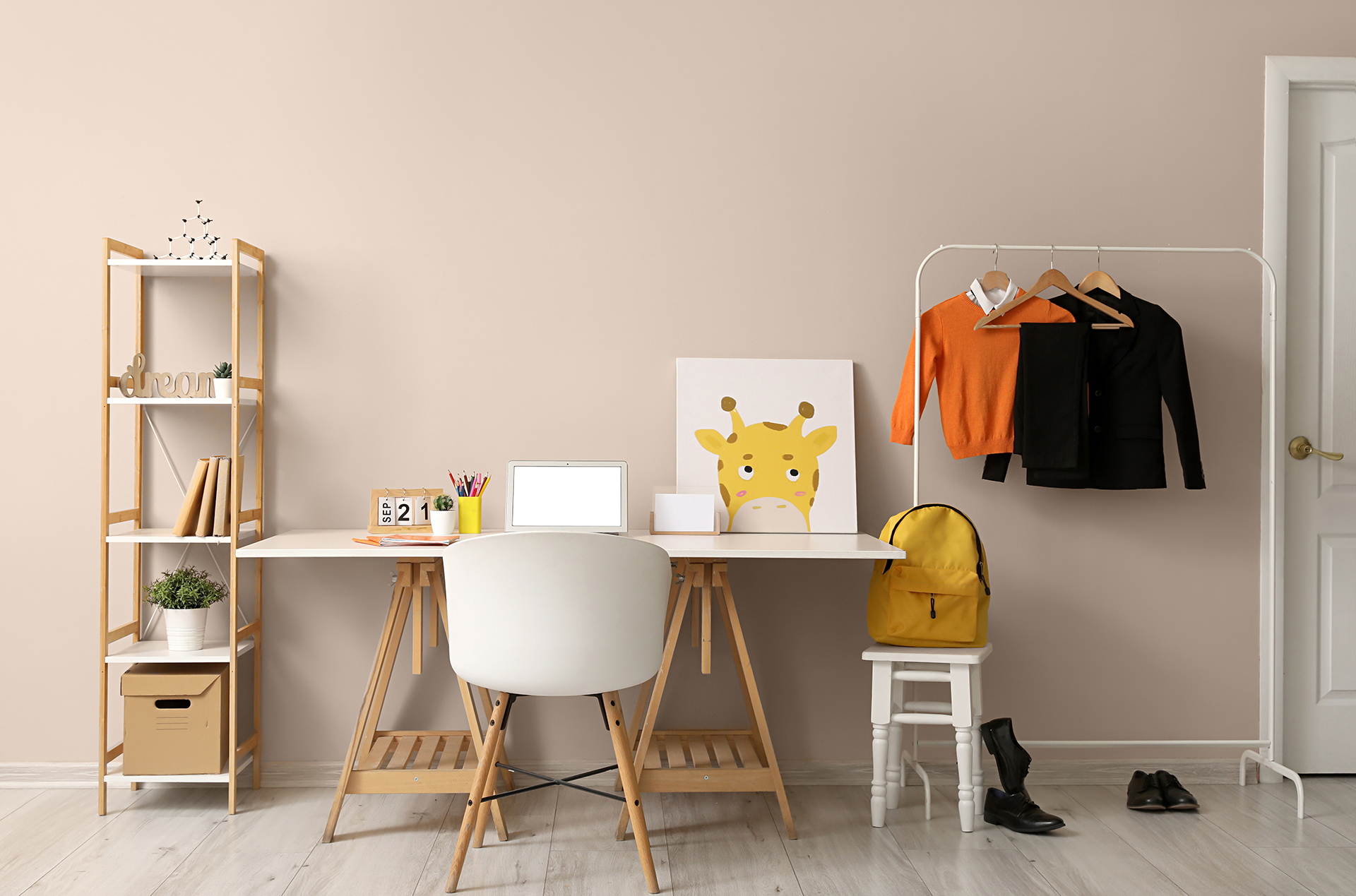 W pokoju dziecka należy unikać intensywnych kolorów, które mogą pobudzać i wywoływać agresję. Zrezygnuj więc z czerwieni i pomarańczowego (ewentualnie pozostaw je w dodatkach). Zamiast nich pomaluj ściany na pastelowo. Odpowiednie będą takie odcienie jak zgaszony róż, morelowy, brzoskwiniowy, beżowy, jasny szary. Możesz też postawić na tapetę i farbę.