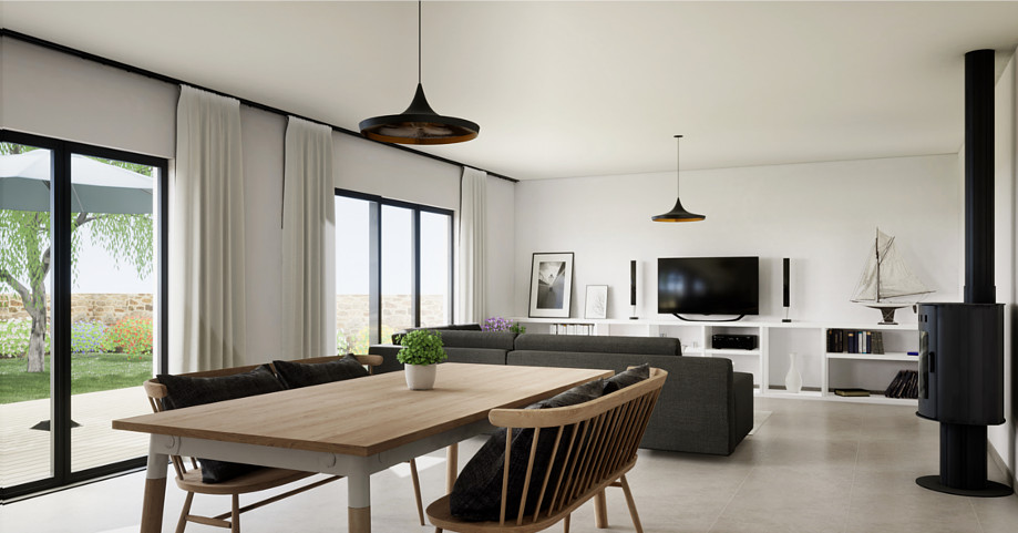 Ściany natomiast pomaluj na biało, np. farbą MAGNAT Ceramic w odcieniu C77 Biały Granit. Nawiążesz dzięki temu do bielonych tynków, typowych dla wiejskich chat. Kolejnym idealnym nawiązaniem do stylistyki prowincji będzie żeliwny piec wolnostojący typu koza. Telewizor zaś umieść na ścianie, traktując go jak obraz. Możesz go nawet ozdobić drewnianą ramą, podobnie jak inne obrazy na ścianach.