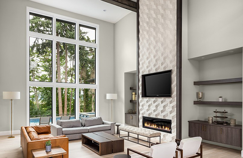Nowoczesny salon z kominkiem – rekomendowane kolory