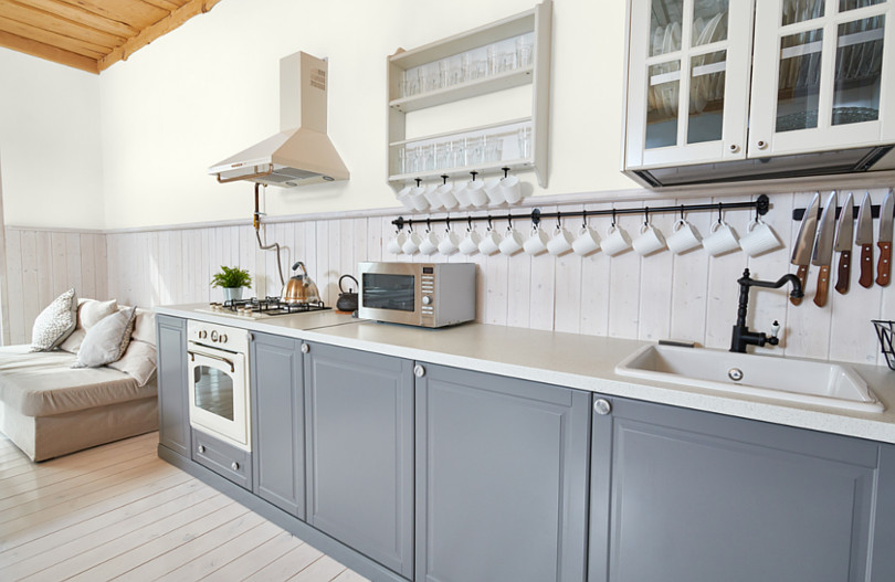 • Biel i jej odcienie, czyli kolory off white, zarówno chłodne, jak i cieplejsze. Z szarością znakomicie współgra kolor waniliowy, śmietankowy czy stara koronka, idealne do kuchni w stylach klasycznych i historycznych.