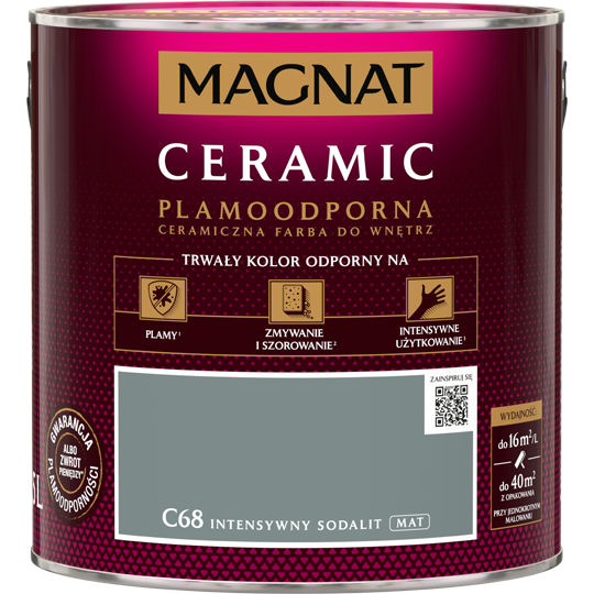 MAGNAT Ceramic to ceramiczna farba do wnętrz bazująca na ceramicznych komponentach oraz najwyższej jakości żywicach i pigmentach. Ta unikalna formuła zapewnia farbie MAGNAT trwały kolor odporny na: plamy, zmywanie i szorowanie oraz intensywne użytkowanie .